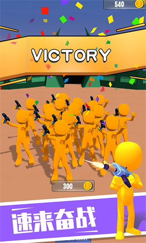 5、升级你的队友--使用获得的金币来强化队友的数量、攻击力和生命值,让他们变得更强大,成立更强大的火柴人反恐队伍。