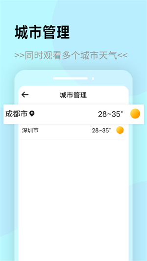 - 实时提醒您注意天气变化,也可以让用户及时的在线查看当天的天气信息,非常的贴心;