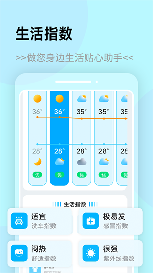 - 为用户提供的都是非常精准详细的天气预报,还可以查看每天的空气质量以及相关的数据;