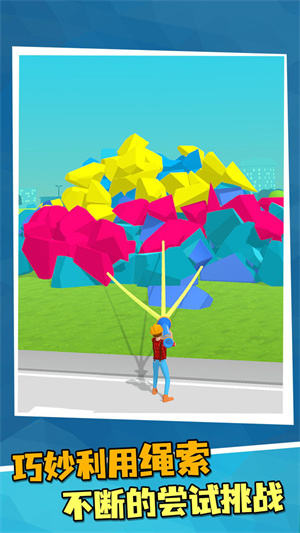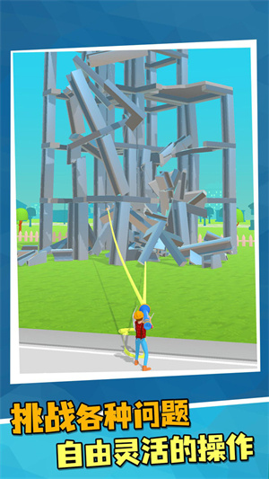 2、你可以将各种高楼大厦绑起来,然后直接拉倒,关卡非常丰富。