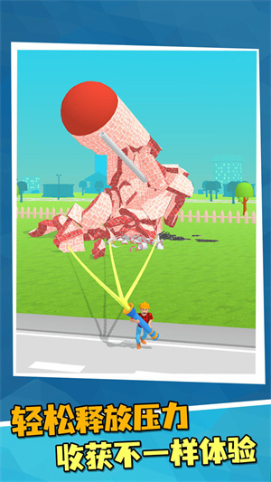 只要滑动屏幕就能去进行结合把控你的力量将所有房屋全部破坏,能够让你忘却烦恼释放你的压力以及各种模式去体验,各式各样的武器都能给你不一样的毁坏感给你的感觉就是轻轻一拉。