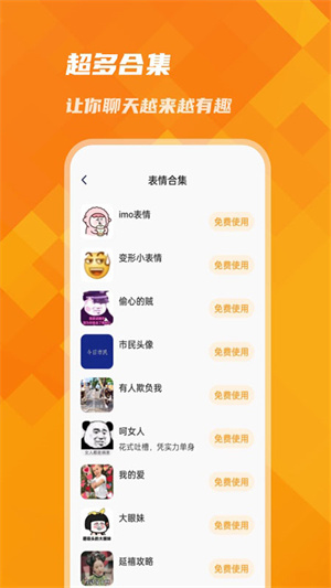 - 超丰富的表情包提供,各种表情包合集、斗图表情让大家使用,在聊天时自由使用,让社交变得有趣;