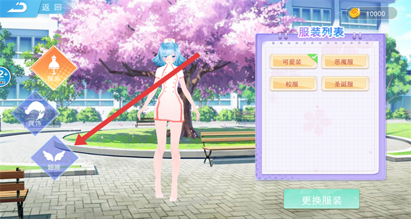 2、在装扮界面,点击翅膀选项,进入翅膀列表界面。