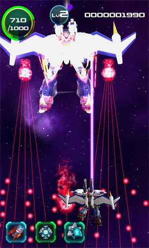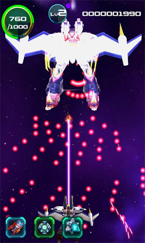 1、有着炫酷的特效展示,左右移动你的战机,让你的视觉体验提升到极致;