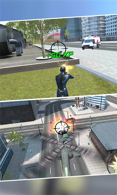 拥有高清的游戏画质,带来更加精彩的游戏视觉效果,各种武器的效果也会呈现出来,带来更加炫酷的游戏效果,让玩家可以体验到超级英雄的感觉,拯救整个城市,成为城市的英雄。