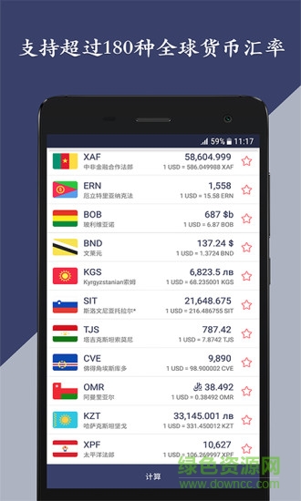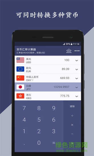 货币汇率计算器app是一款强大实用的汇率计算工具,囊括100多个国家的币种信息,用户可以随时查询实时汇率,计算精准,界面简约美观,操作简便,可以用在海外代购、出国旅游、出国留学等方面,有需要者欢迎在绿色资源网下载~!