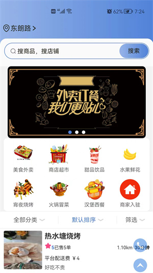 3、品类包括附近美食、水果、蔬菜、超市、鲜花、蛋糕等,无论是早午晚餐、下午茶、宵夜,还是中餐、西餐、家常菜、小吃、快餐、海鲜、火锅、川菜、蛋糕、烤肉、水果、饮料、甜点等;