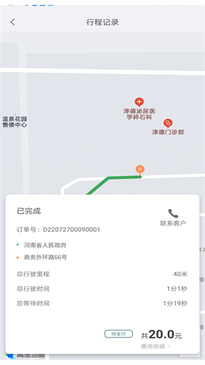 - 每一次的接送订单全都有,实时查看当前订单交易和收入明细,订单号、行驶里程、行驶时间、等待时间;
