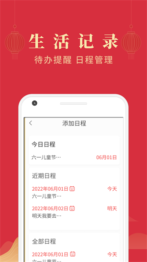印象万年历可以是大家的记事助手,各种的信息均可在线添加记录,用日历的形式展示每天记录的内容,可以将重要信息或日程添加,如生日、待办事件均可轻松添加,设置提醒时间,准点提醒用户避免错过重要事件,满足大家的需求。