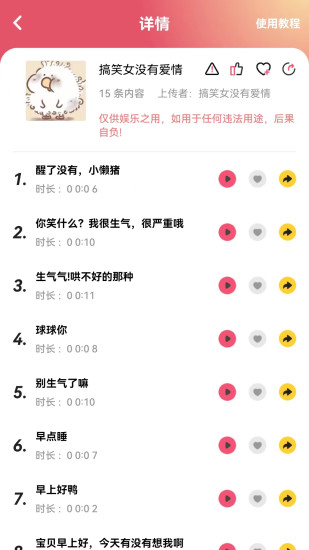 - 每个语音包都有多个便捷的语音,点击可以快速听,在线试听语音包,更好的选择自己所需要的语音包。