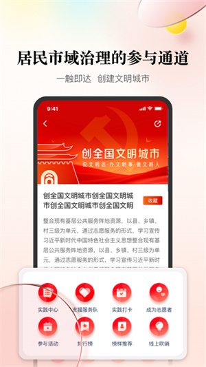- 集纳本地政务、便民应用、文化娱乐、生活休闲等便捷服务,居民可通过应用快速参与市域治理建设;