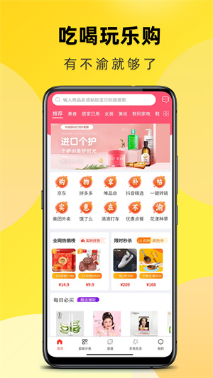 - 汇聚多个平台的商品,淘宝、京东、拼多多、苏宁易购、唯品会等平台的商品全都有,满足大家的购物需求。