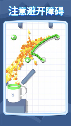 整个玩法过程充满啦乐趣极度考验大家的控制能力,操作模式也极为的容易上手还有很多玩法能去体验只有将球放置到杯子中的横线处才能通过关卡,还有很多小球的皮肤让你去解锁使用感受不一样的色彩风格。