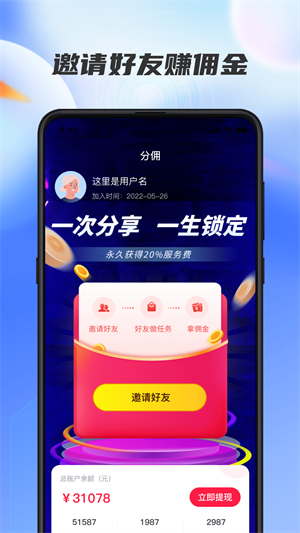 3、邀请好友可以领很多的福利,通过软件还可以轻松赚钱和提现。