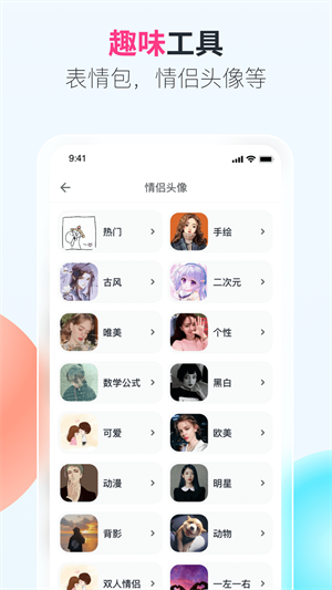 - 为用户提供了非常多有趣的表情包资源,直接的在线下载就可以在聊天时使用,也可以让聊天更有趣;