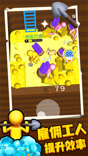 挖土小能手游戏是以不断向下挖土的方式去制造的,你将要控制着角色去向下挖掘里面都是各种宝物或者是钻石一类的东西,各种工具都数必须要有的不然整个效率会逐渐的跟不上,去地图中任意的进行探索挖掘出更多的宝藏。