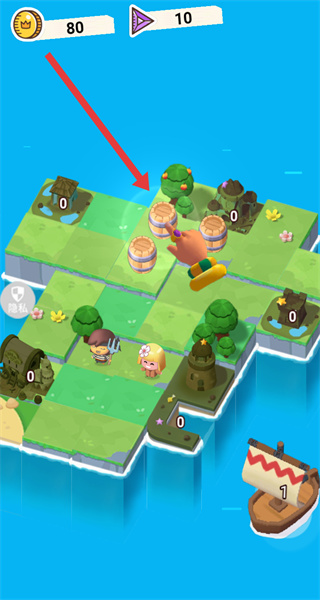 1、点击地图上的木桶区域,触发资源获取或区域解锁。