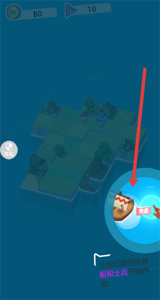 4、点击右下角的“突袭”按钮,乘坐船领士兵开始作战。
