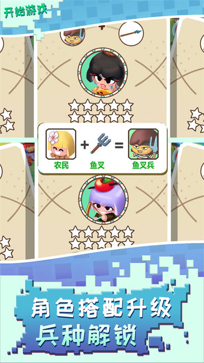 3、使用农民还有不同武器,就可以合成不同士兵,可以发起强大的战争体验。