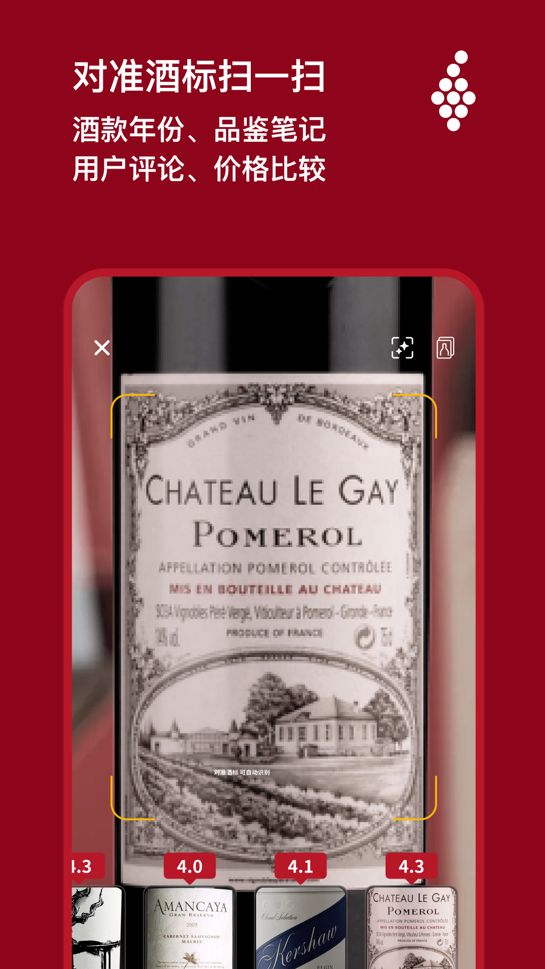 - 不仅可以通过短视频等形式记录分享品酒体验,还能了解到真实可靠的葡萄酒评分与品鉴。