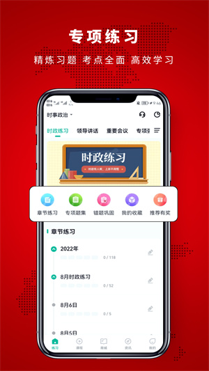 - 这款软件为用户提供了非常多的学习知识,还有时事专题、评论、会议讲话题集等考试必备的资料;