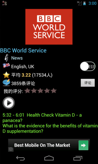 英语电台雅思托福听力口语是一款可以收听全世界各地英文电台的应用,非常适合用来练习雅思,托福,托业,英语四六级等听力。边听广播边学英语,一举两得,寓教于乐。软件汇集了全世界各地的用户,国内用户可以与来自各国的网友对话聊天,快速提高口语能力。