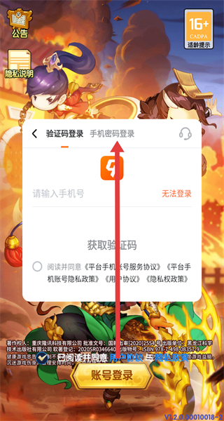 4、输入手机号和密码,勾选已阅读并同意相关协议后,点击登录按钮,完成密码登录操作。