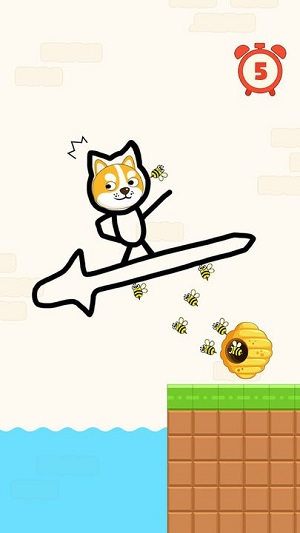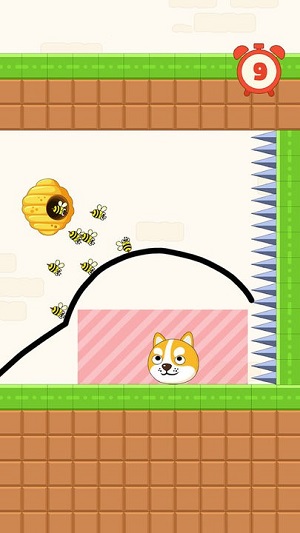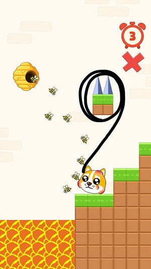 2、玩家需要使用画线的功能来保护狗子,不受到蜜蜂的攻击;