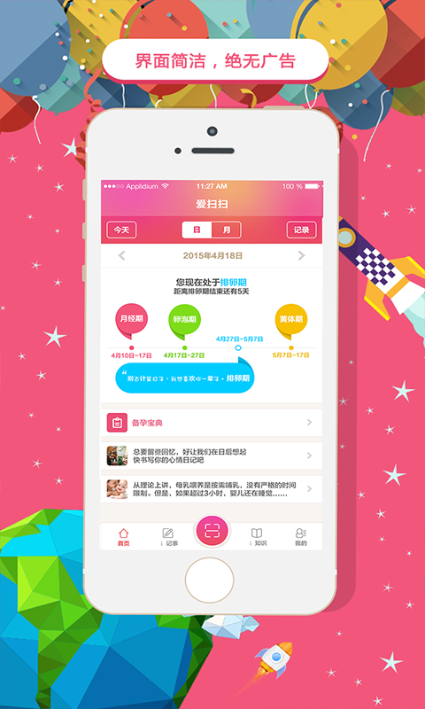 爱扫扫app是一款深受用户喜爱的生理健康测试软件,能够智能测试出女性的生理周期、排卵日等信息,并且为用户推送了丰富的女性生理健康常识,让你时刻关注自己的生理健康。是女性朋友手机必备的生理测试神器。欢迎下载体验。