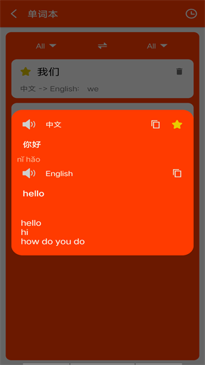 - 收藏你喜欢的单词或句子,将其保存到你的收藏夹中,或者直接点击复制,让你更快速粘贴到输入框。