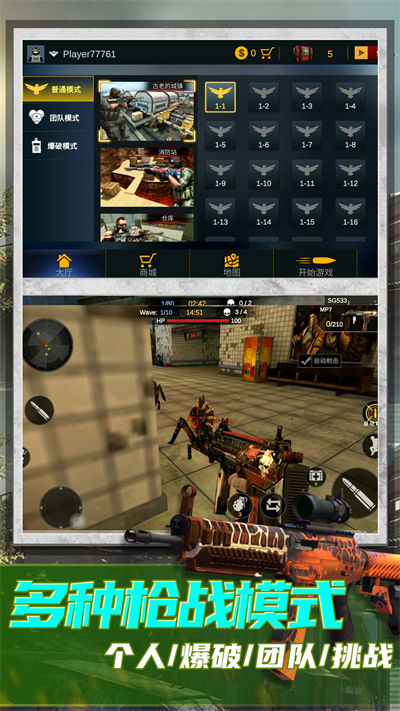 枪神之战2游戏将会带来非常逼真的射击游戏体验,玩家可以在其中体验超多的游戏模式,并且可以解锁超多的游戏枪支武器,会有更多对决可以加入,感受射击游戏带来的火爆体验,各种复杂的游戏地图,给玩家增加更多难度。