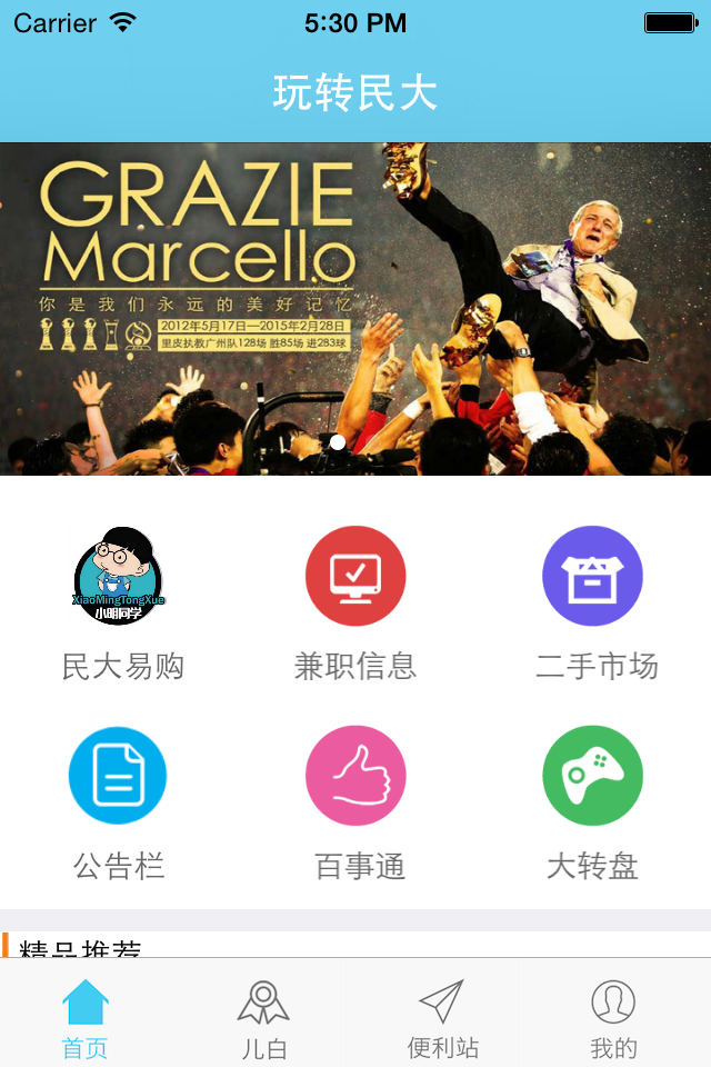 玩转民大是一款用于服务学校生活的App,包括在线购买商品,兼职信息,二手商品买卖,公告栏,幸运大转盘,活题讨论,便利店商品等。