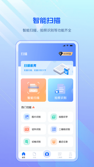 扫描全能版是一个在线扫描和多功能使用的办公软件,是一个可以在手机里面移动的办公软件,使用手机就可以实现一个文字的识别功能,书写识别和拍照翻译,等等大量的功能来为我们服务,可以在线的进行一个编辑翻译,方便了我们的使用。