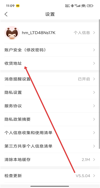 2、在设置页面点击“收货地址”,进入收货地址页面。