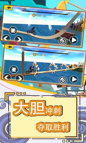 2、完成不同的挑战还能够得到不一样的奖励为我们提高自己的摩托车;