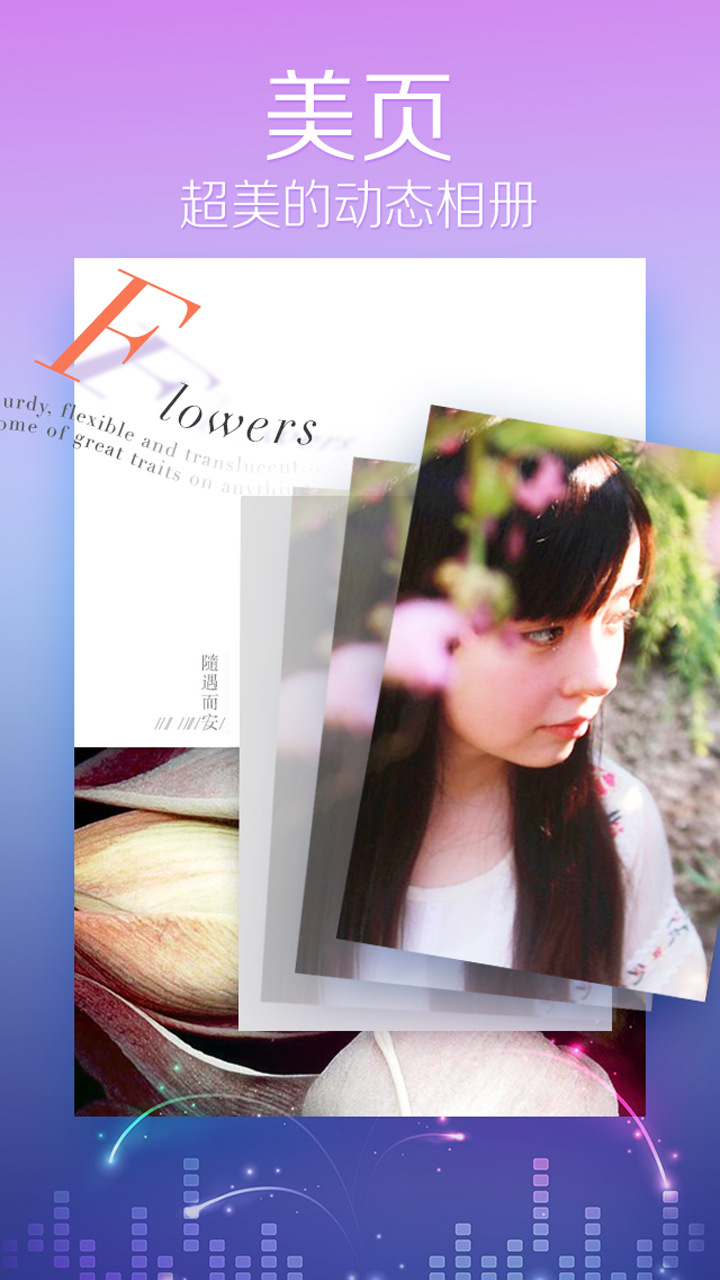 给你的照片,配上优雅、有情绪、充满故事性的背景音乐。在音乐、动画的衬托下,照片不再只是精致的图片,而是富有生命力的一段段动人的故事……