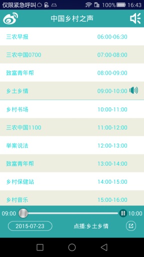 中央人民广播电台国家电台频率中国乡村之声,在线收听每日节目直播点播。中国乡村之声通过中波、农村大喇叭、互联网、移动终端客户端以及直播卫星等渠道覆盖全国。立足公益性,突出服务性,强化实用性,全天24小时播出谈话类、信息类、服务类和文娱类的广播节目。设有《乡村谈话》、《三农信息》、《致富天地》和《乡村大戏台》等栏目。全天首播内容从早5:00开始,至22:30结束,以适应农村听众的作息习惯。中国乡村之声还组建了包括农业、农村、法律、心理、社会、疾病防控等方面共2千多位专家学者组成的节目顾问团队,其中包括杂交水稻之父袁隆平院士等,并与农业部、国家林业局、中国气象局等涉农政府部门以及长影集团、中化化肥、中农控股等企业签订了公益性“广播惠农”战略合作协议。农业部副部长余欣荣表示,中国乡村之声的开播对于继续做好“三农”工作,意义重大。