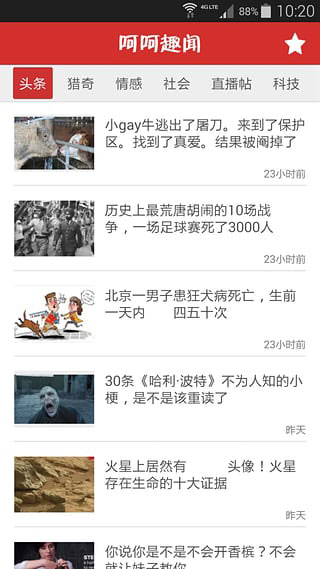 提供,头条、猎奇、情感、社会、直播帖、科技等分类。