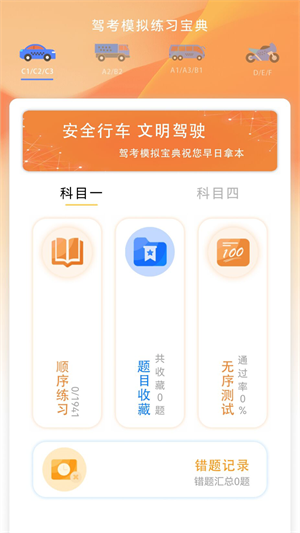 - 带来科目一、科目四的所有题库,可以根据自己的驾考进度来选择题库,每天在线刷题掌握更多的知识点;