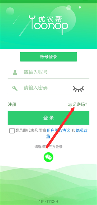 1、打开优农帮ERP的登录界面,我们需要点击忘记密码。
