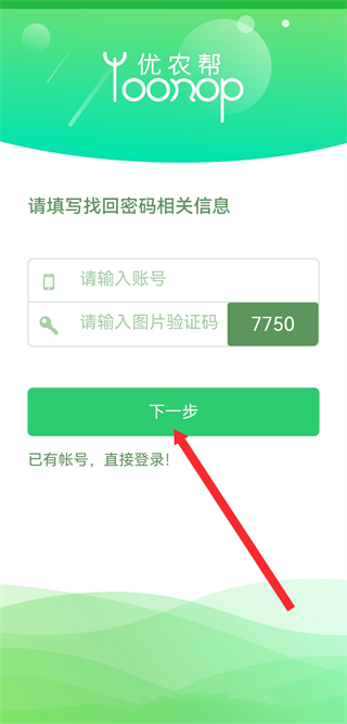 2、进入找回密码页面,输入账号和图片验证码,点击下一步。
