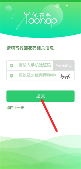 3、输入手机验证码,设置新密码,点击提交,完成密码找回操作。