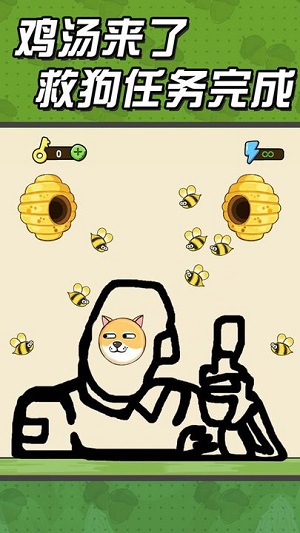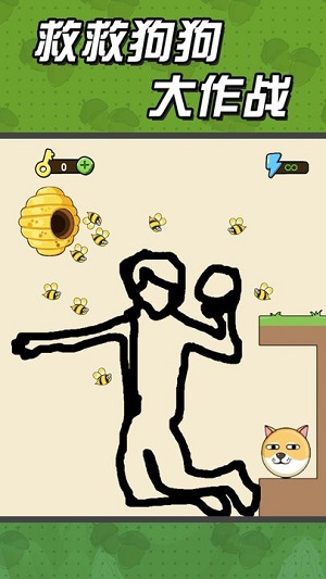 神笔大画家是一个非常有趣的手机游戏,在游戏里面来画线保护好自己的小狗,是一个休闲益智的游戏,在游戏里面玩家需要通过一个画线的方式来保护小狗受到了蜜蜂的攻击,玩法也是非常的轻松有趣的,在规定的诗时间里面来保护小狗的安全就可以完成闯关。