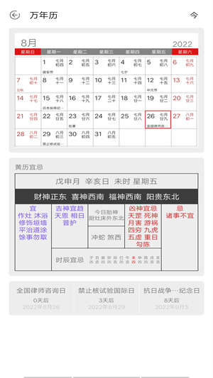 - 在线查看万年历,用日历的方式看到农历、公历、节假日等等,点击日历可以查看到对应的黄历宜忌信息;