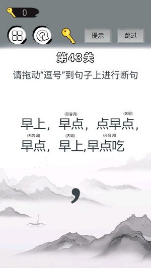 3、是一个使用中国传统文化汉字为背景的画线断句的游戏。