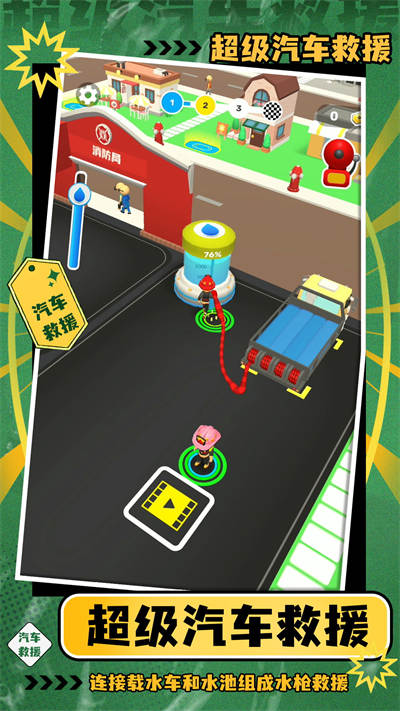 超级汽车救援游戏将会带来消防员救援的行为,会带来各种真实的救援现场,拥有更加丰富的游戏救援道具,带来更加丰富的游戏体验和尝试,玩家将在其中驾驶消防车辆去进行救援,到达消防场地之后,开启水的开关,进行救火。