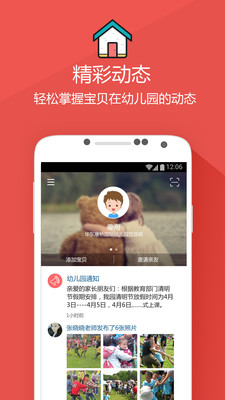 园所动态:实时查看园所通知、班级通知、园所活动照片、园所教学视频;