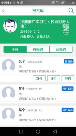 2、包含看简历,签约,评论,支付(商户支付学生)等于一体,兼职神器!