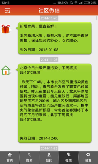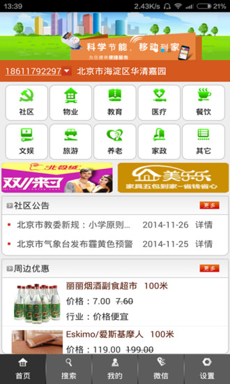 信息沟通,随时随地:社区微信让您第一时间获取政府街道、物业管理等公告通知,紧急情况下还可立即与物业、第三方公司电话联系