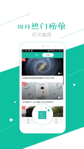 1.查周月榜单:周、月榜单,为您推荐热门好文